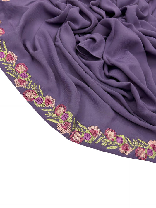 Luxury Amethyst Purple Floral Border Korean Shaal