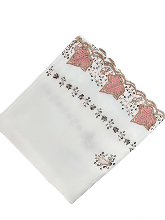 White Pink Leaf Bridal Shaal