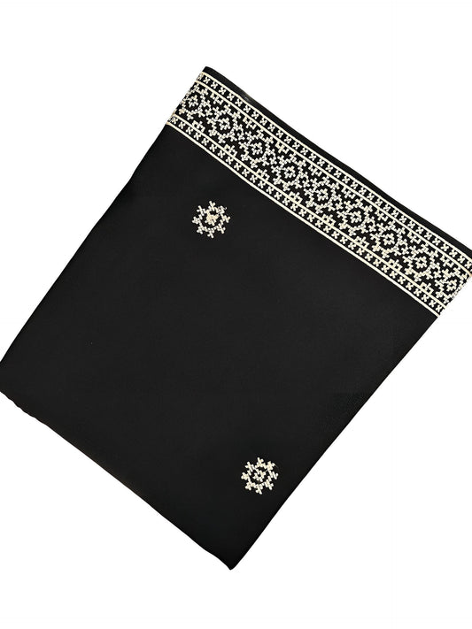Black Cream Embroidered Border Shaal