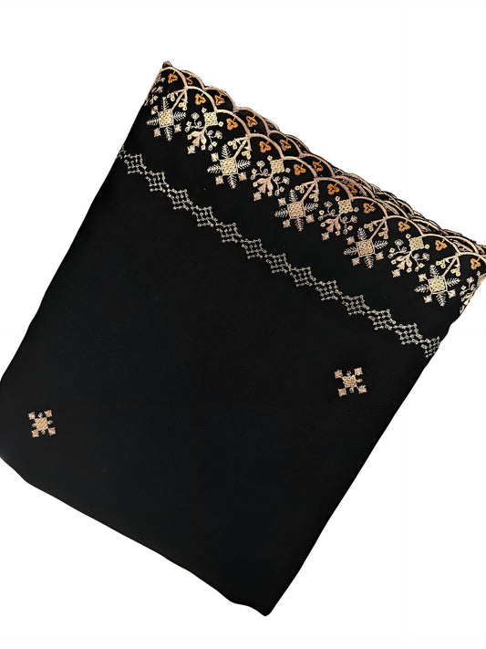 Black Double Floral Cutwork Shaal