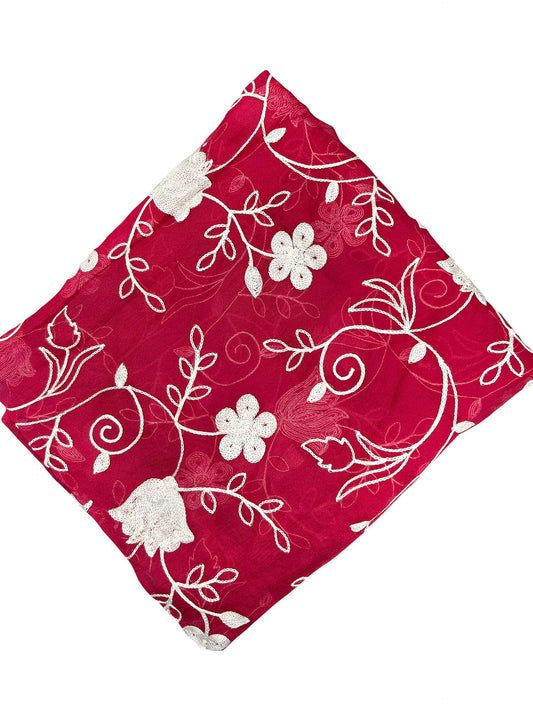 Pink Floral Embroidered Chiffon Dupatta