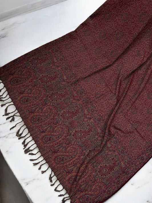 Starry Paisley Pashmina Shawl - Burgundy Peanut Beown