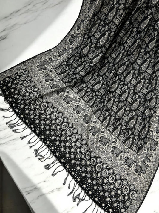 Dotted Paisley Pashmina Shawl - Black Silver Ice