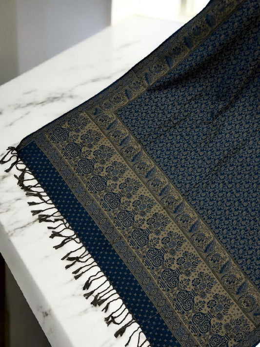 Dotted Paisley Pashmina Shawl - Airforce Blue Cream