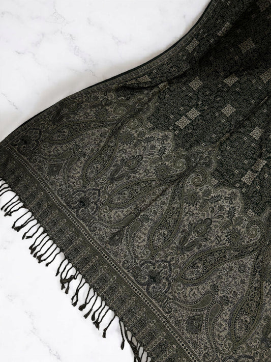 Paisley Pashmina Shawl - Black Silver Grey