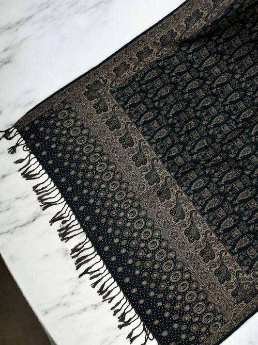 Dotted Paisley Pashmina Shawl - Black Silver Ice