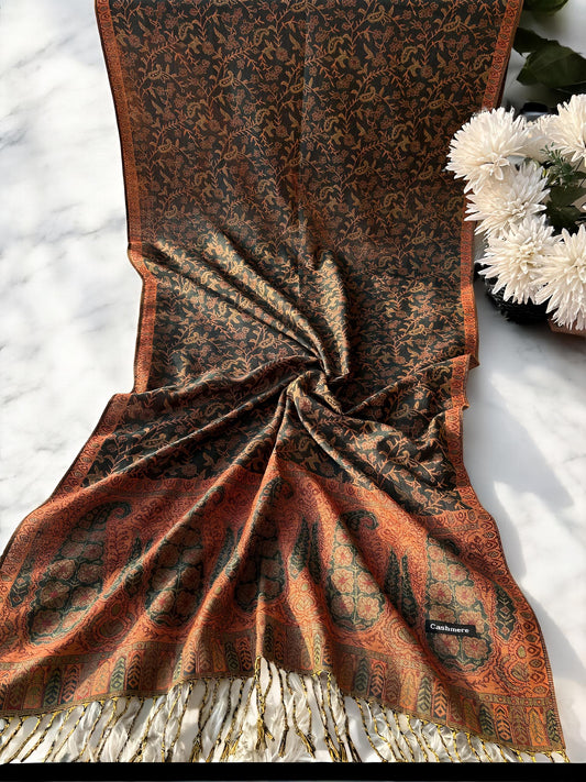 Chestnut Black Paisley Pashmina Hijab Shaal