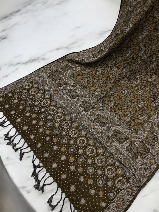 Black Light Brown Dotted two-tone Paisley Pashmina Hijab