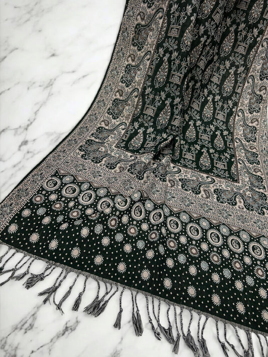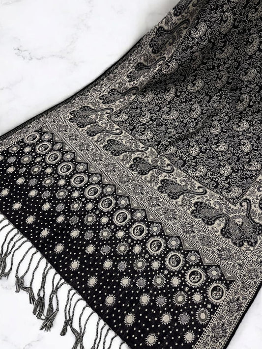 Black Creamy Beige dotted two-tone Paisley Pashmina Hijab