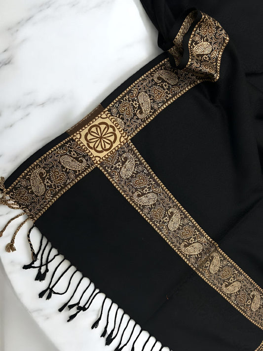 Black Beige Border Paisley Pashmina Hijab