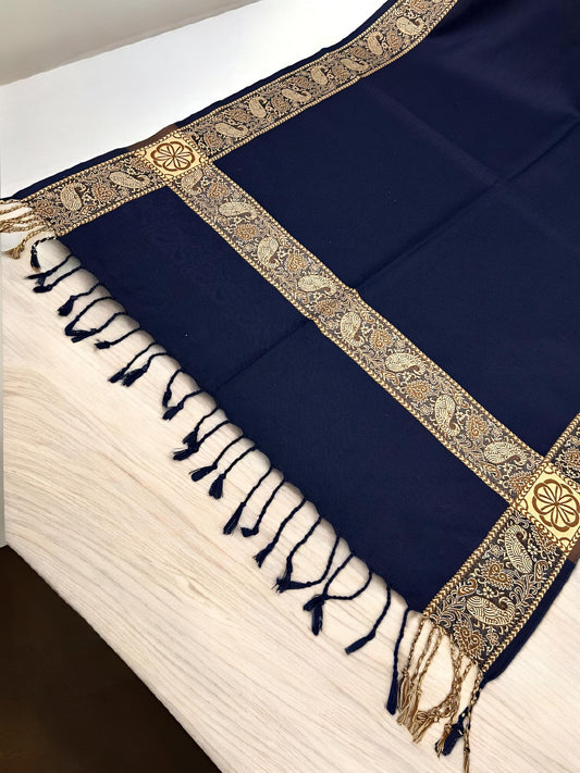Navy Blue Beige Border Paisley Pashmina Hijab