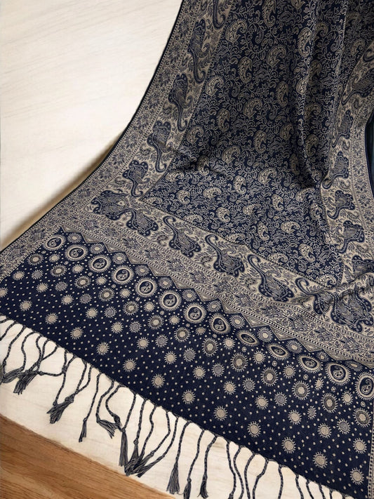 Midnight Blue Cream Dotted two-tone Paisley Pashmina Hijab