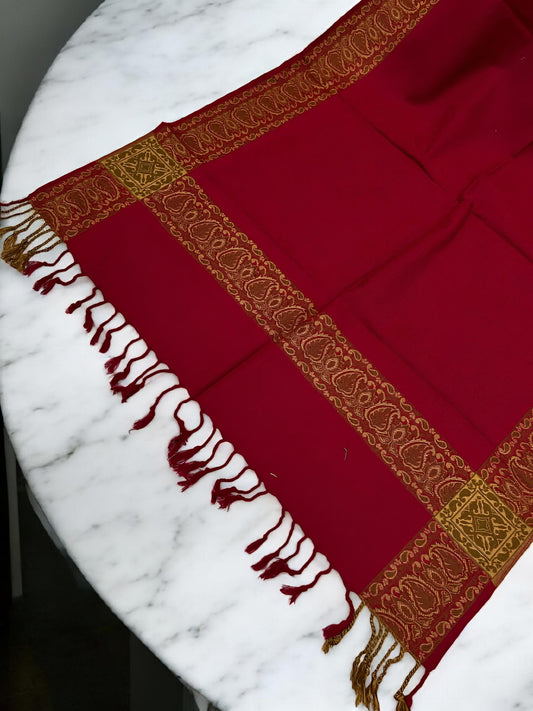 Raspberry Mustard Border Paisley Pashmina Hijab
