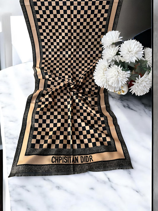 Luxury Branded Wool Scarf - Black Caramel Dior