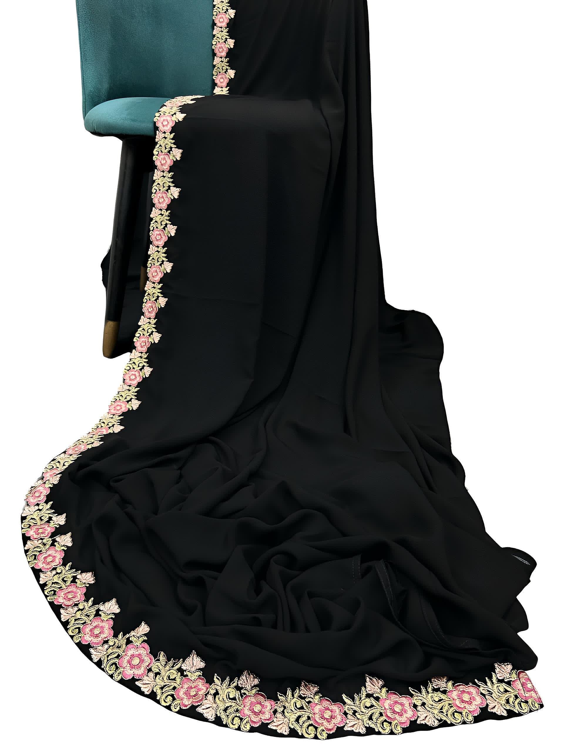 Black Pink Peonies Floral Border Shaal