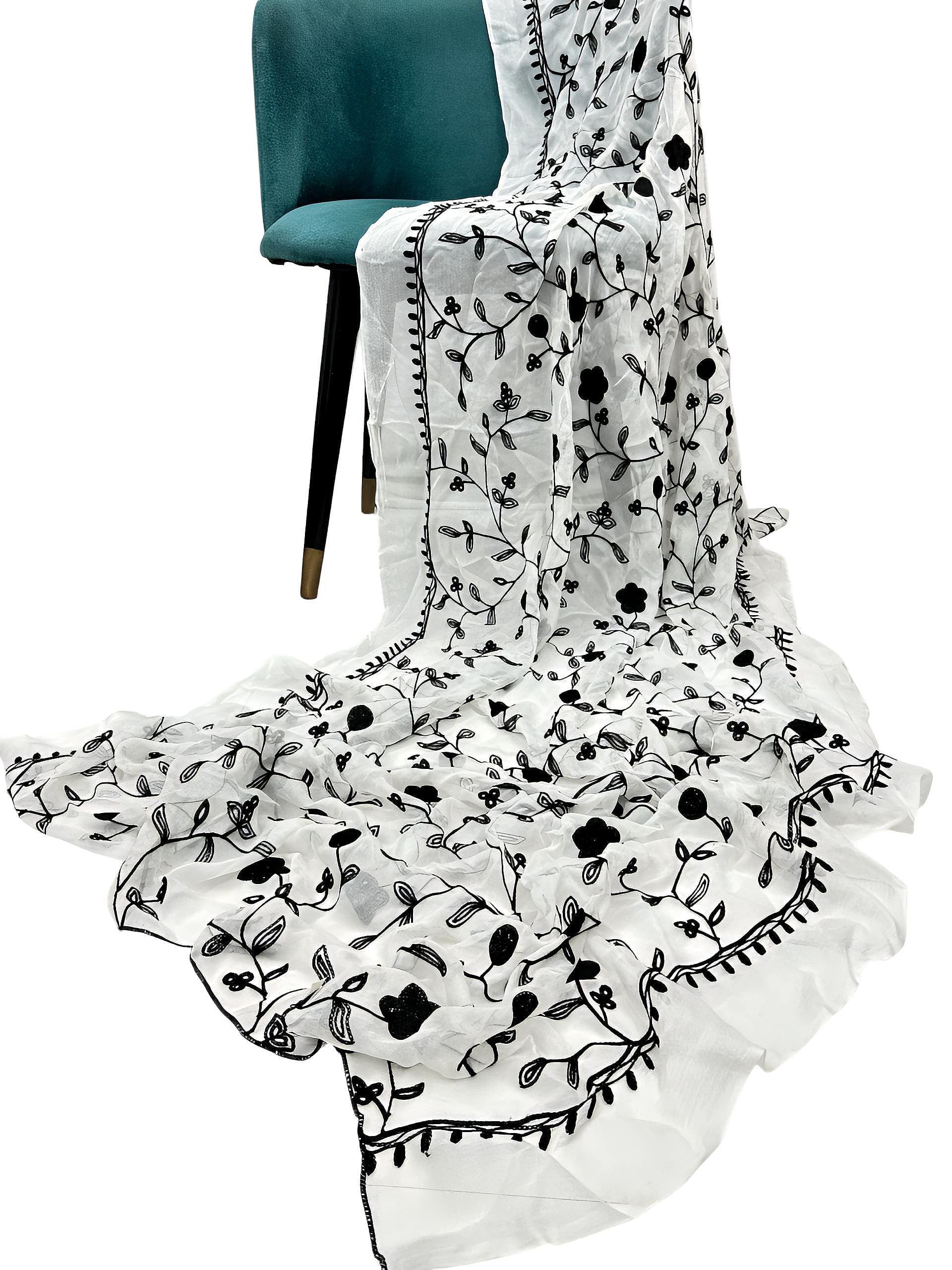 This Embroidered Chiffon Dupatta is made from 100% pure, breathable lawn fabric, making it soft, lightweight, and comfortable to wear.