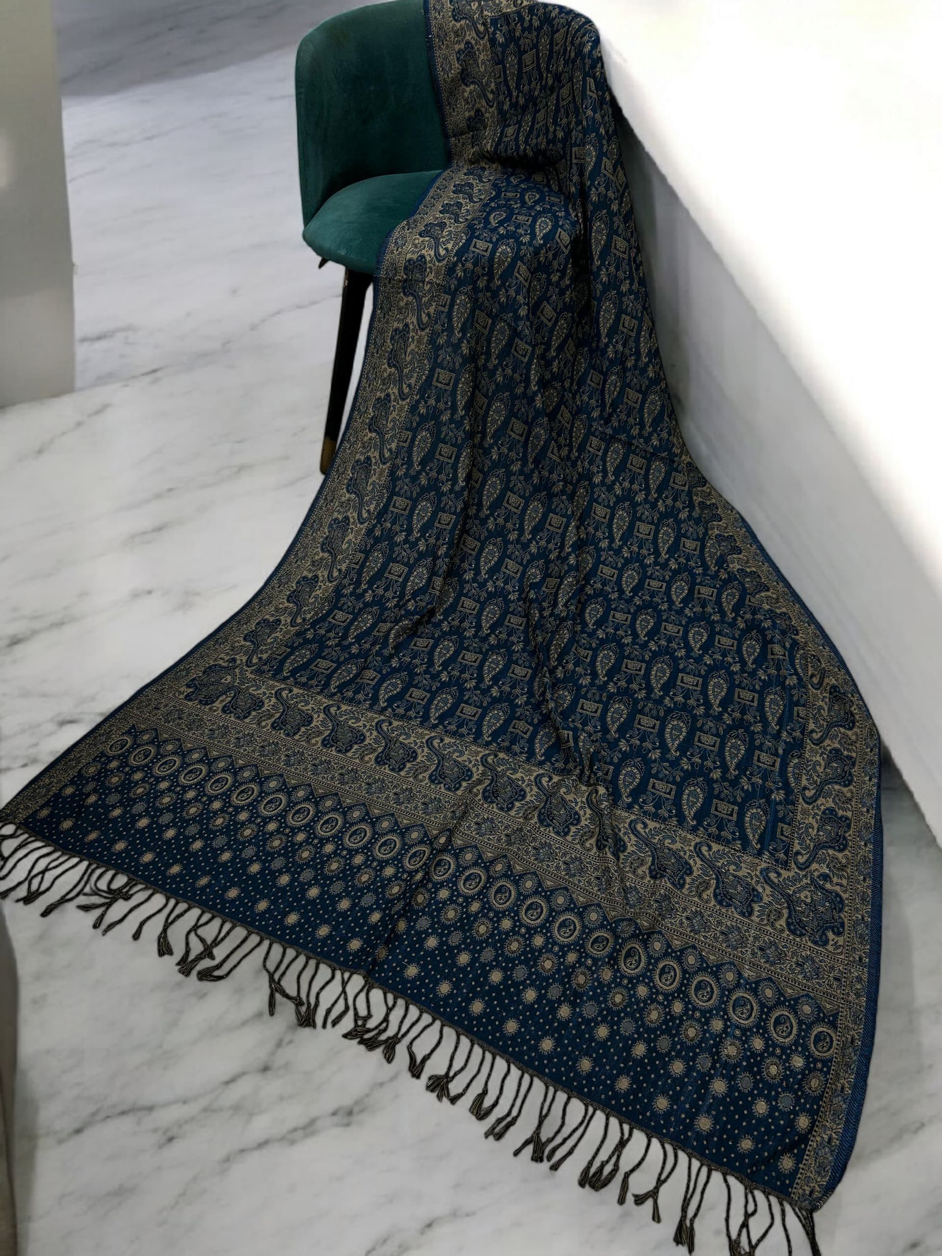 Dotted Paisley Pashmina Shawl - Airforce Blue Cream