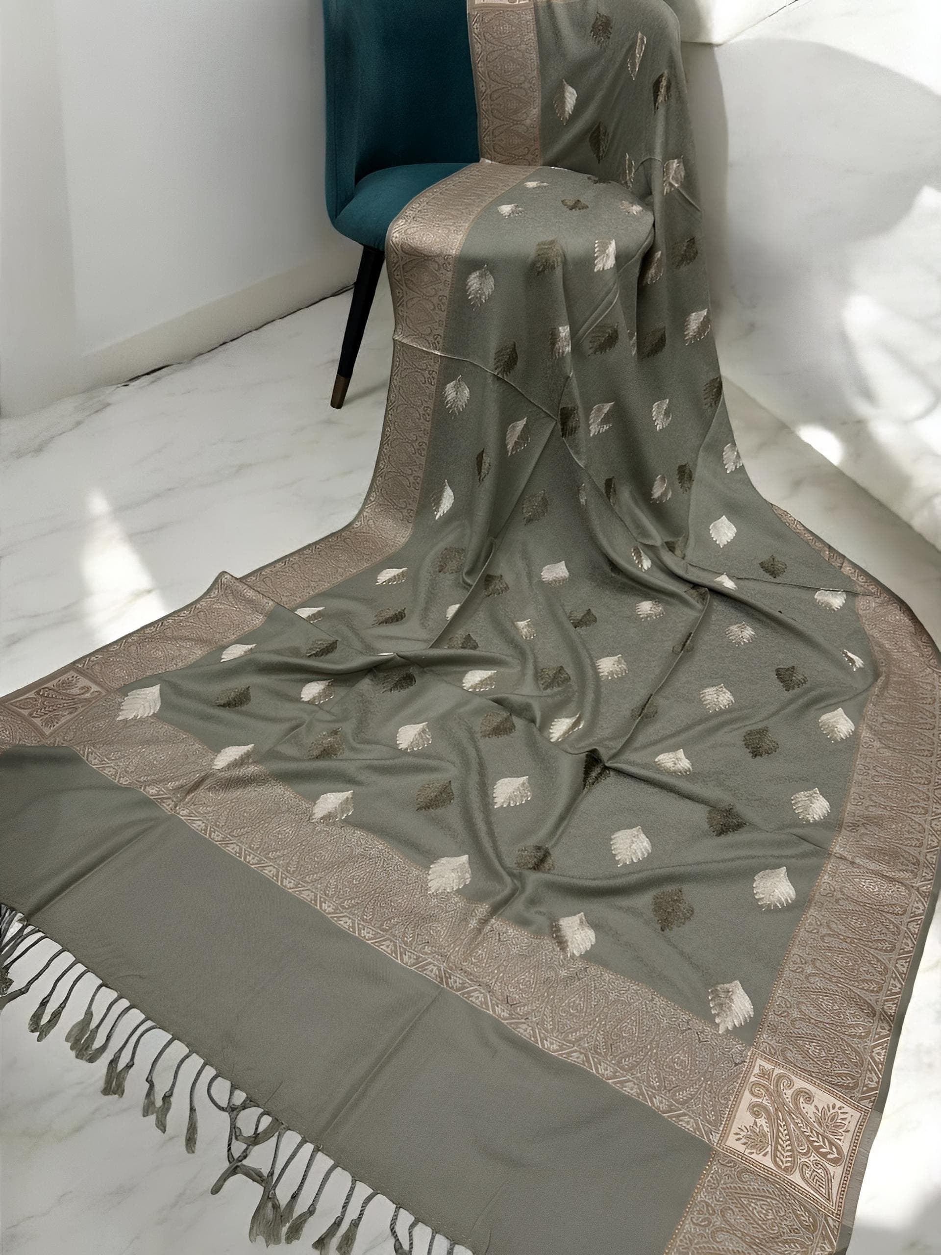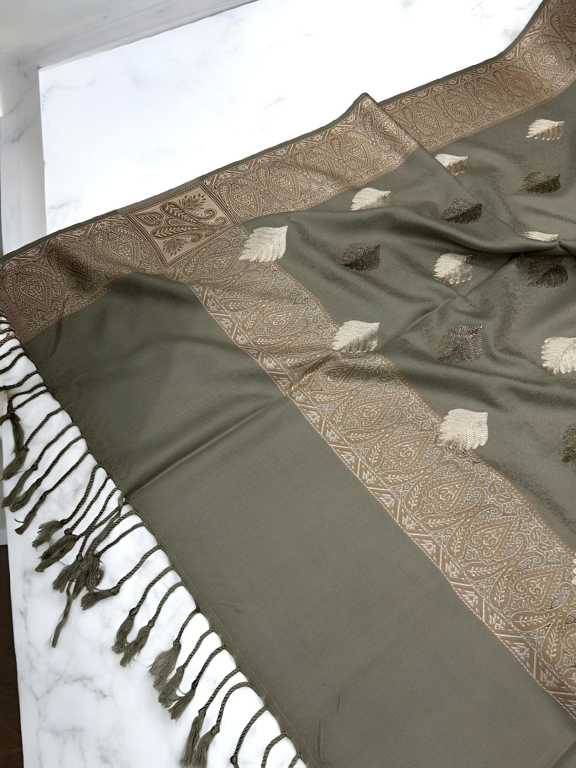 Wrap yourself in timeless elegance with our Pashmina Shawl, woven from fine pashmina fabric — known for its silky touch and gentle warmth.