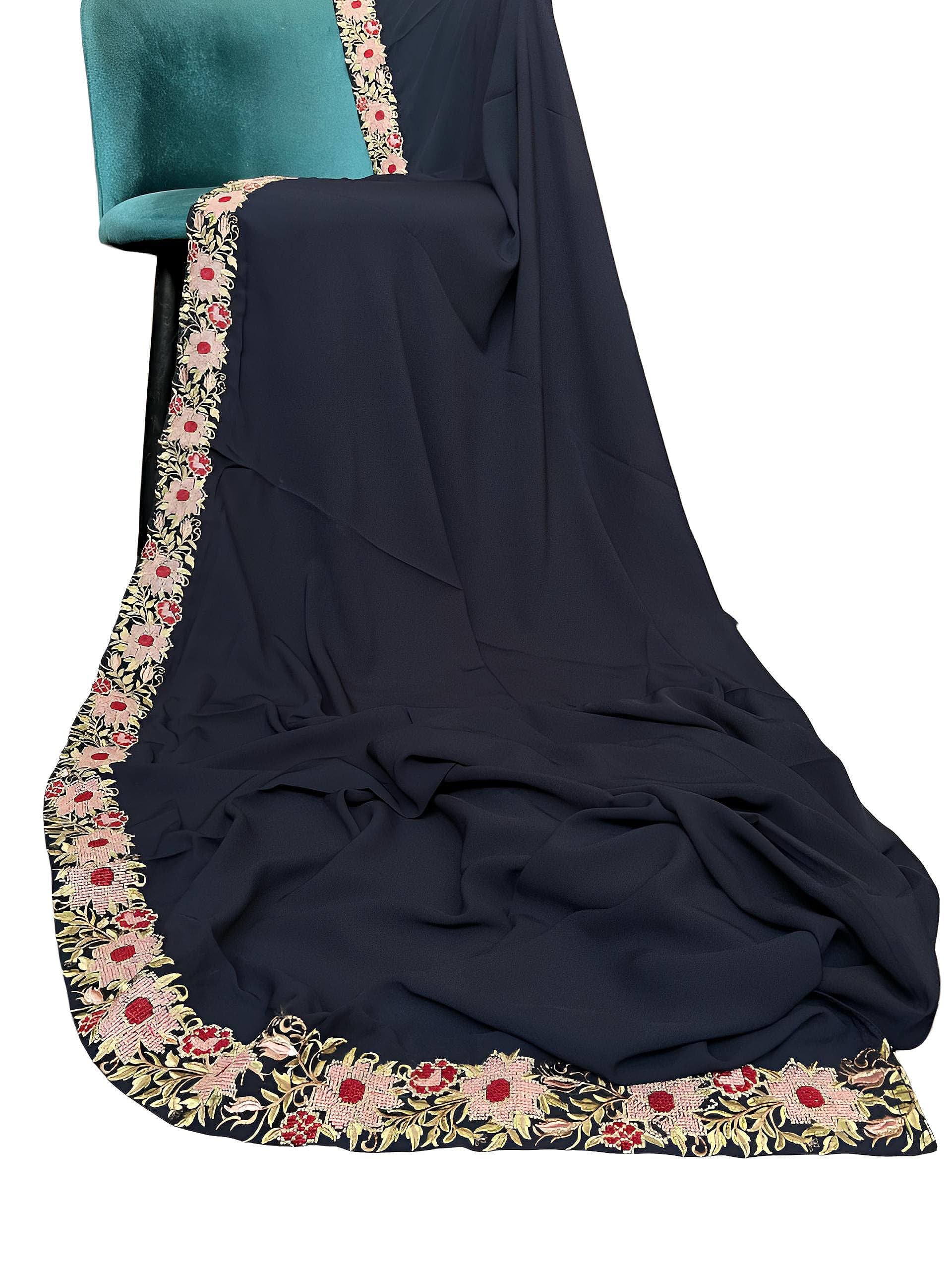 The 2.75-yard length and 1.5 yards width shaal is a versatile garment that can be worn in a variety of ways. It is typically made from a lightweight fabric, such as korean georgette, and comes in a variety of colors and patterns.