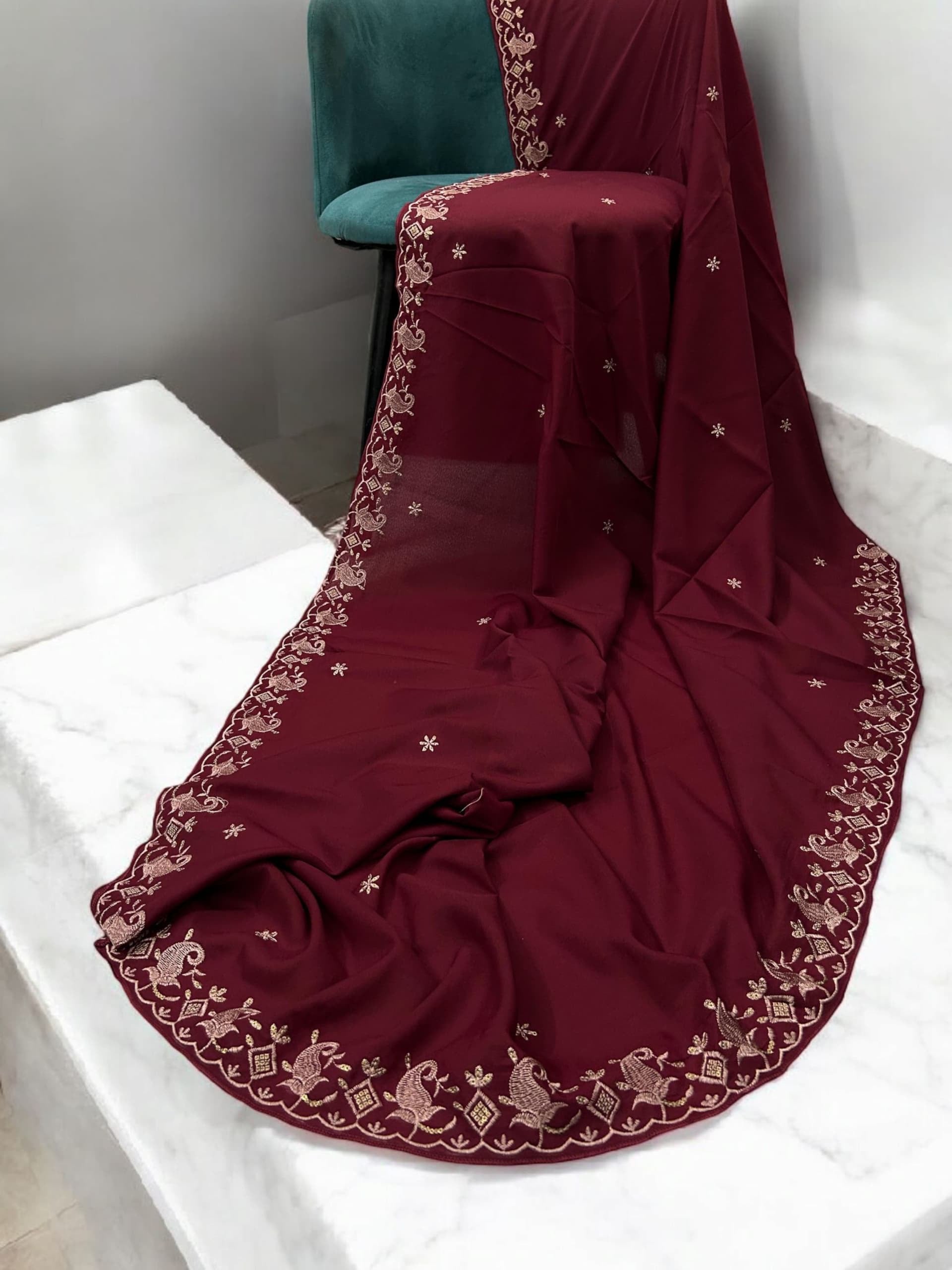 Maroon Pink Fancy Cutwork Border Shaal