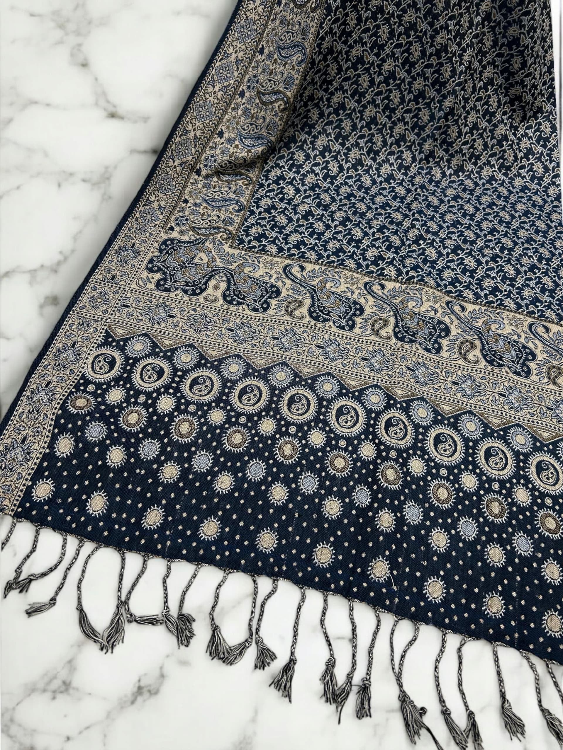 Midnight Blue Cream Dotted two-tone Paisley Pashmina Hijab