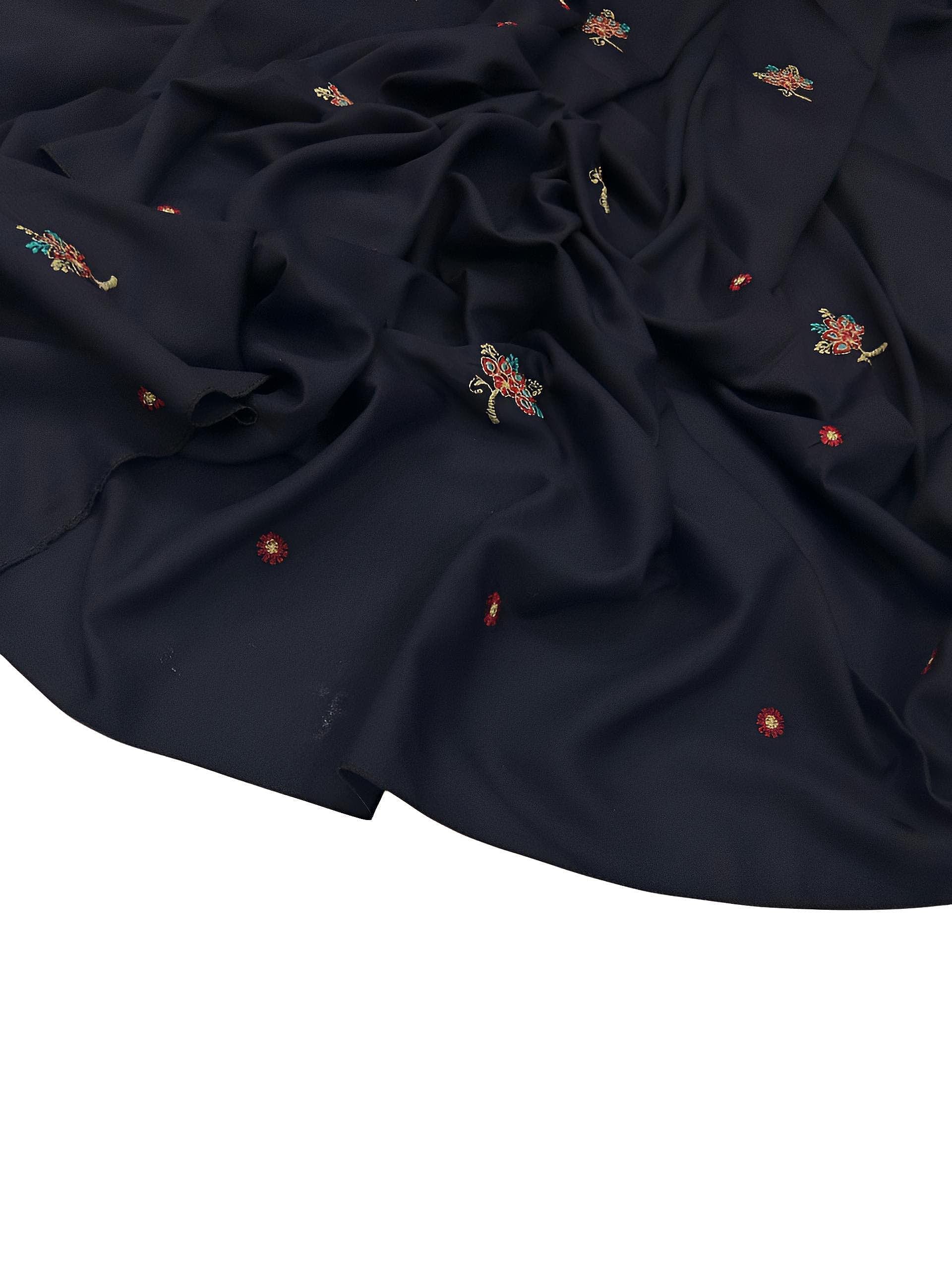 Navy Blue Floral Embroidered Plain Shaal