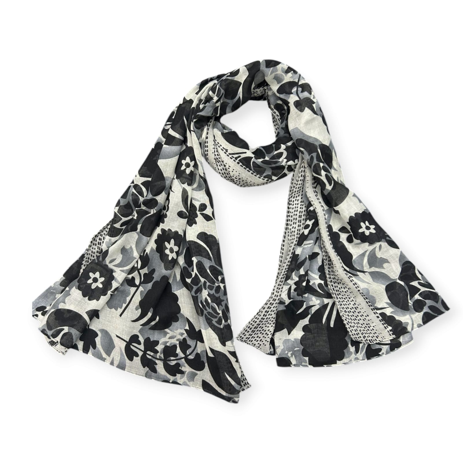 Smoke Grey Silver Peonies Printed Modal Hijab