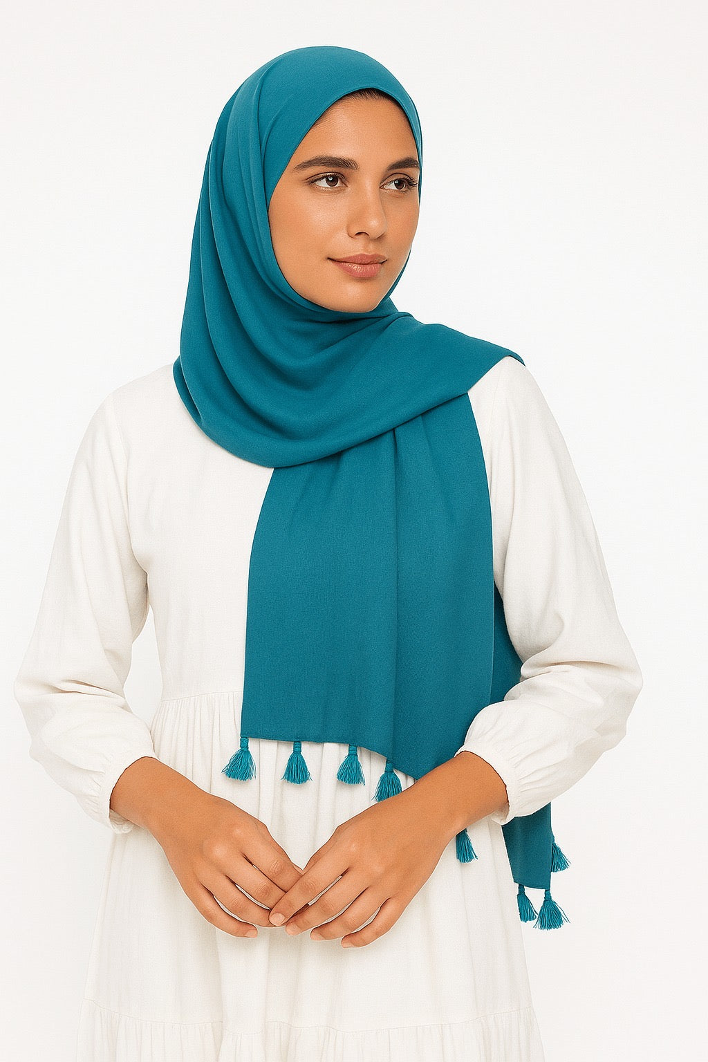 Teal - Lawn Tassel Hijab