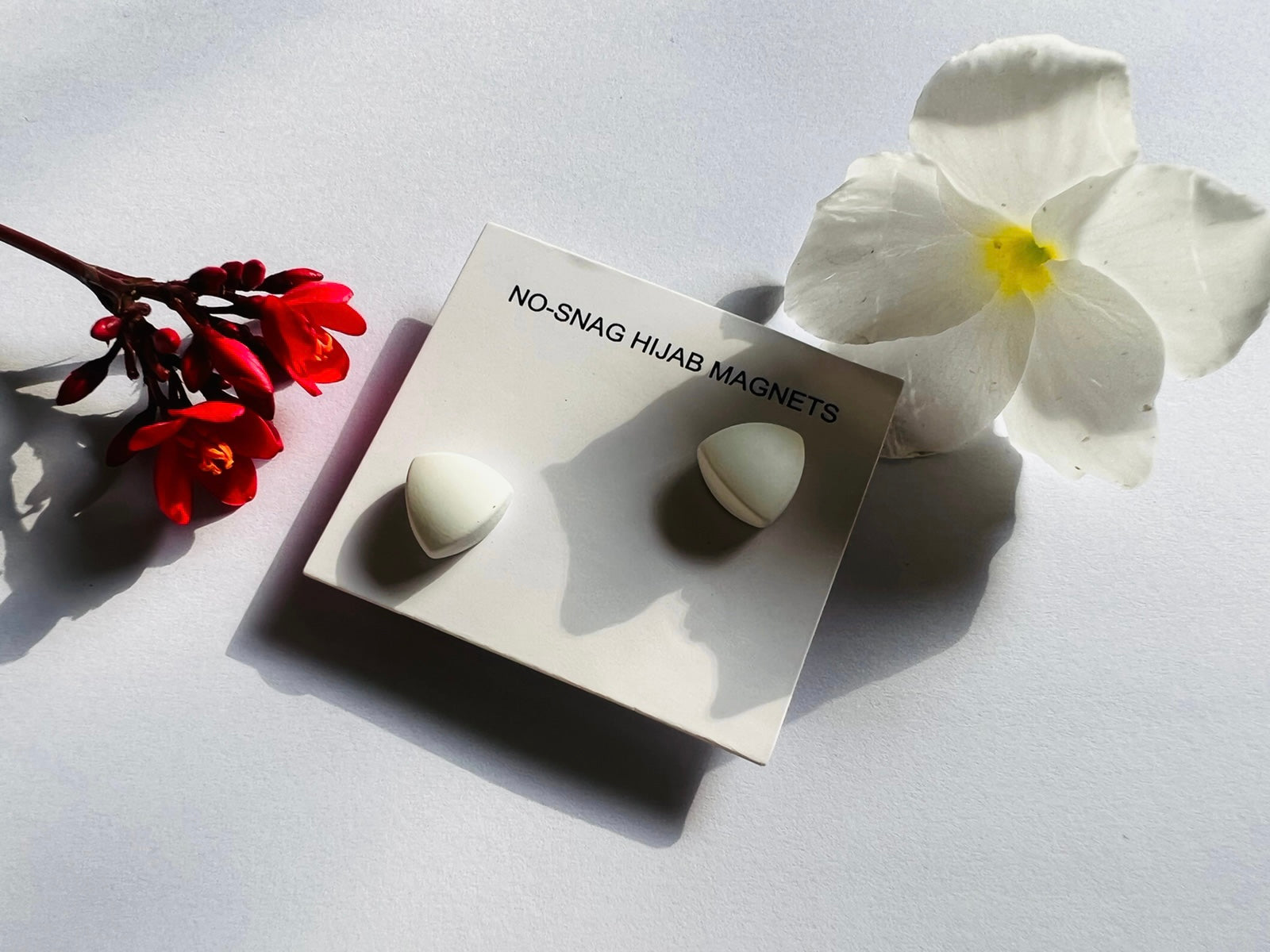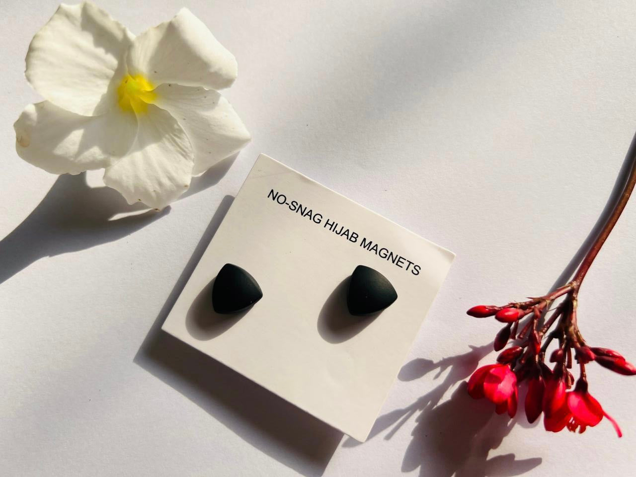 Hijabis, prepare to be amazed! Ditch the outdated pins and embrace Trionic, the triangular-shaped hijab magnet that takes style and security to a whole new level. With its extra-high frequency magnets, Trionic keeps your hijab flawlessly in place all day long, no matter how active you get. It's time to say goodbye to pinholes and hello to endless possibilities!