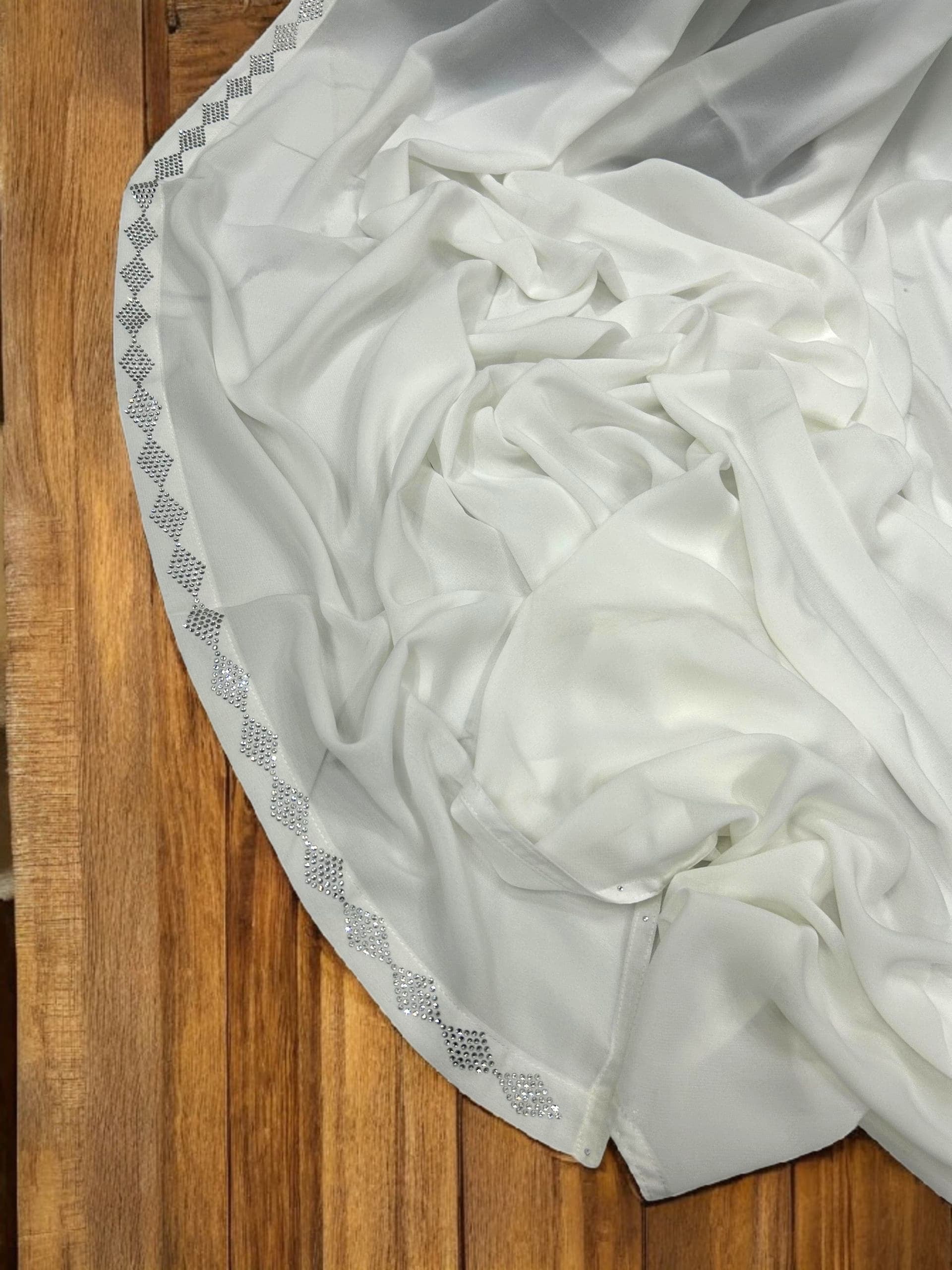 White Diamond Border Embroidered Korean Shaal